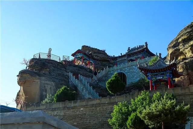 从神木高家堡出发一路沿秃尾河南下,在乔岔滩办事处凉水井村东有寺庙傍河而坐。车行至此,一尊洁白雕像伫立山头,近看时,微笑、慈祥的菩萨静静地望着秃尾河水流去的远方……