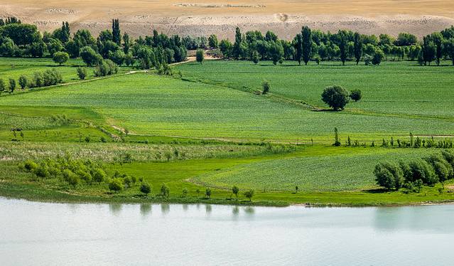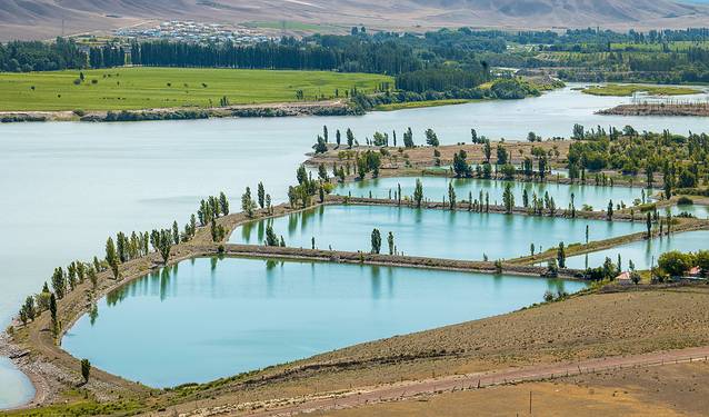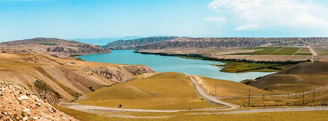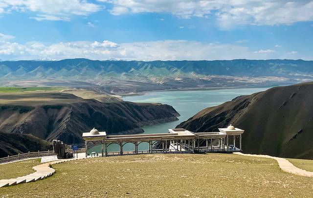 从 巩留 县城出发,大约经过半个小时,便看到了壮阔恰甫其的海, 新疆 是没有海的,恰甫其海是一个特殊的地方,这里并不是天然的景点,而是一个集灌溉、旅游为一体的水利枢纽, 特克斯 河灌入峡谷,一条堤坝连接了两片湖泊,甚是壮观。