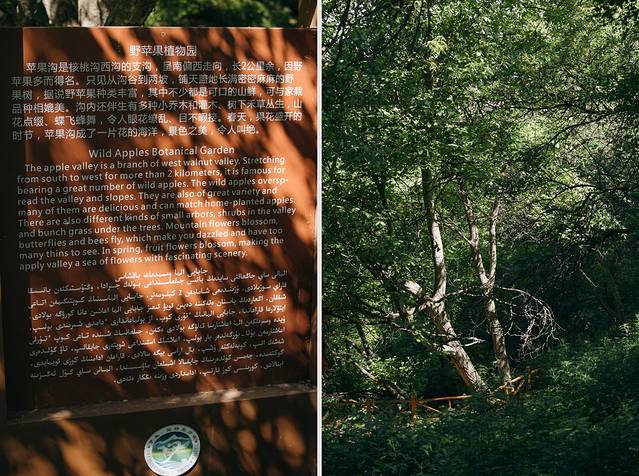 与其说这里是一个风景区,更确切的讲,这里是一个生态普及学习区,野核桃、野苹果、野山杏、野荨麻等植物园,各种见过的没见过的植物,十分丰富,令人大开眼界。最让人震撼的肯定是核桃树王,一千多年的树龄,倒而不死,直到现在依然硕果累累,被当地人成为“圣洁”之树,是祥瑞之树,深受尊敬,不过树王结果在10月,我们没能看到枝头挂满核桃的景象。