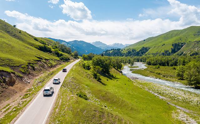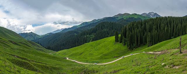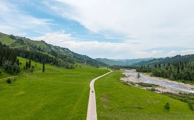 新的一天,新的出发,一想到今天要去的是 塔里 木景区和恰西风景区,整个人都为之振奋,开着车驰骋在道路之上,目光所及之处皆是一片有层次的绿色,河流穿行而过,这一切都美好极了。