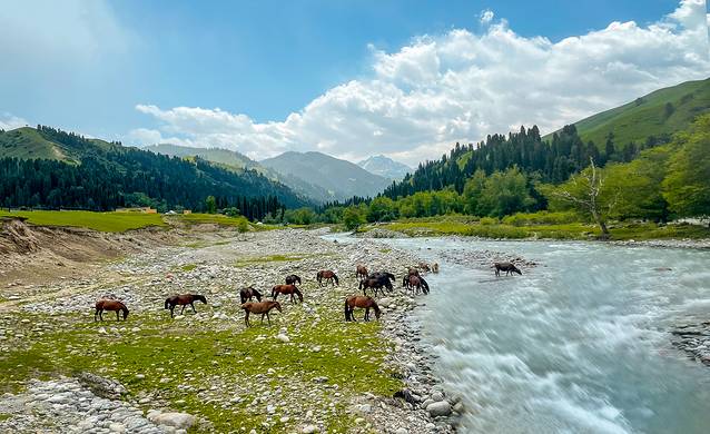 奔腾的河流、茂密的森林、安逸的马群、平阔的草原,野趣横生,放纵天地,这里就是 伊犁 巩留 塔里 木森林公园,开车自驾,徜徉其中,有纵横四野的洒脱,也有闲话家常的雅趣,纯粹的蓝天,飘逸的白云,谁能说这不是天堂。