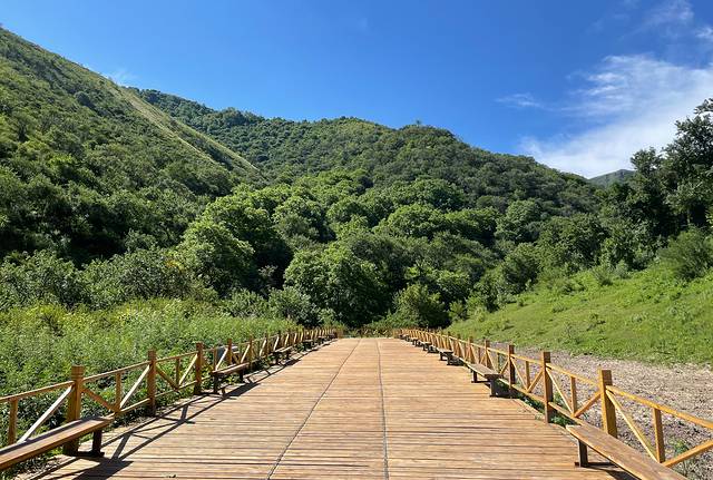 野核桃沟算是开发得比较完善的景区,服务中心、停车场、卫生间、停车场等各种便民设施应有尽有,海拔也只有1700多米,下车之后可以走一走木栈道,感受原始物种带来的震撼。