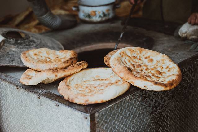 进 塔里 木景区之前需要先采购午餐,当然是香喷喷的 新疆 烤馕最适合了。新鲜出炉的烤馕散发着一股淡淡的焦香味,面食独特的香气勾起了我们每个人的馋虫,吃一口,香酥极了,调料比例也是刚刚好。