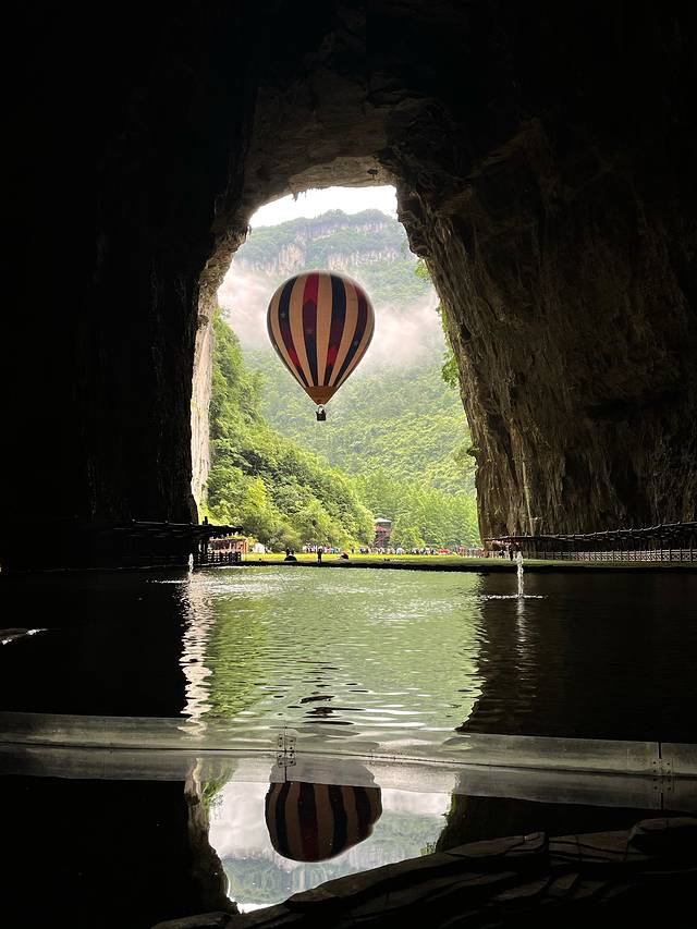 腾龙洞最出圈的图就是洞口拍热气球了!有兴趣的可以坐一下,就是升上去落下来,120/位