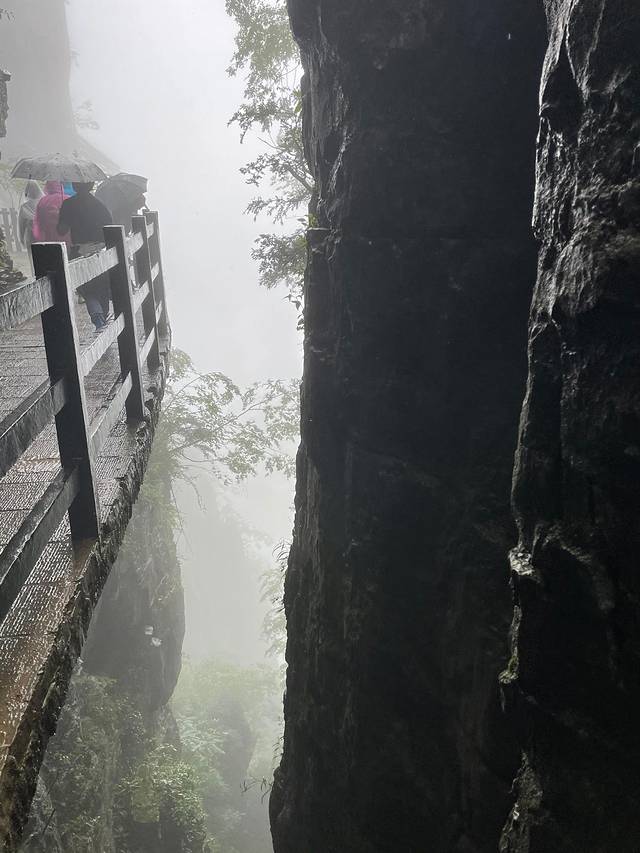 上天:七星寨需要爬山(耗时4h+,上山下山,且没有回头路),山上高处几乎全是雾,好在知名景点“一线天”、“一炷香”都是近景,大雾也能看到,但风景会大打折扣!建议还是挑个天气好的日子来,因为路途实在非常辛苦......爬不动坐滑竿,全程900元,特别贵。另外缆车上风景还是蛮不错的,会从两个山峰间穿过~