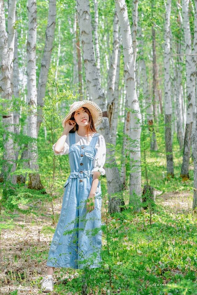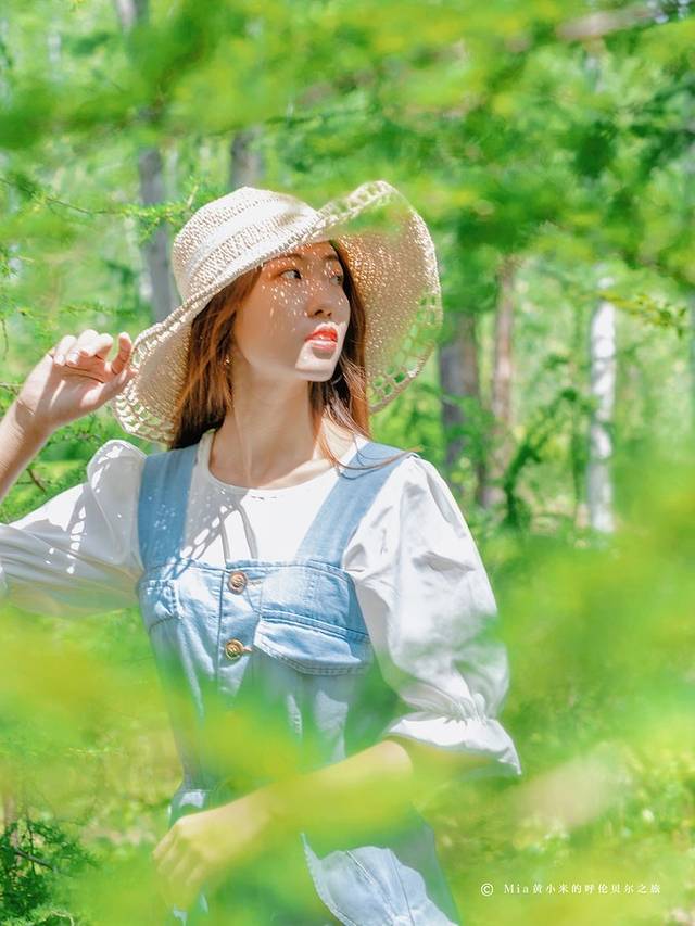 因为树木太高,对比下,人容易显矮,建议蹲下仰拍或者拍半身哟!