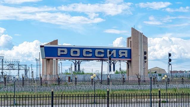 沿车轨往里是 俄罗斯 国门,门上“РОССИЯ”六个硕大的字母很醒目。