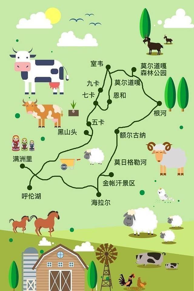 这其实是一条以 海拉尔 为起始点的环线,正常是逆时针走,从 海拉尔 -莫日格勒河- 额尔古纳 - 根河 -莫尔道嘎--恩和/ 室韦 - 黑山 头- 满洲里 - 海拉尔 。
