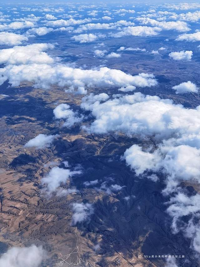 在前往 海拉尔 的航班上,目光不自觉地被窗外景色吸引。一朵朵白云如棉花糖般可爱地悬浮在空中,俯瞰大地,地貌逐渐从地势起伏的崇山峻岭过渡到平坦开阔的草原。