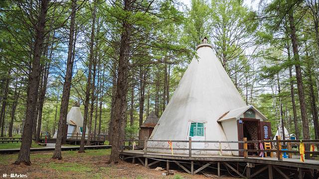 兴安神鹿园坐落在得耳布尔郊外广阔的坡地上,雨后初晴,森林和木屋颇有点童话庄园的感觉。