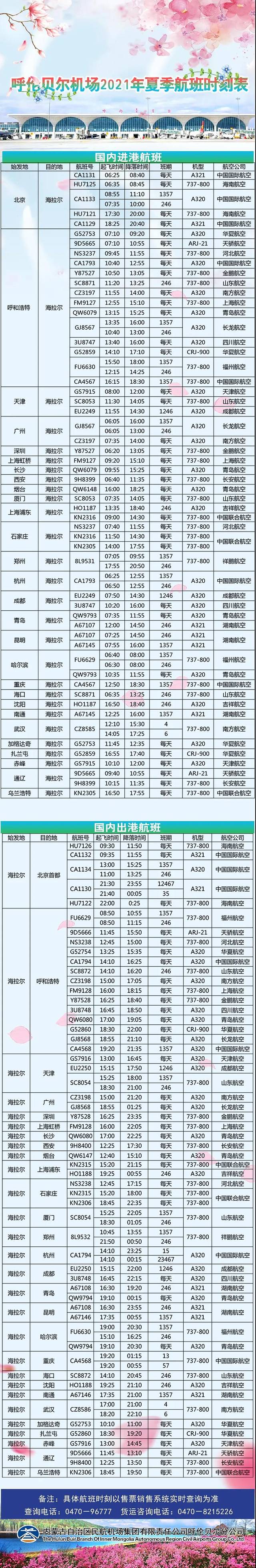 附上一张呼伦贝尔夏季航班的时刻表,方便大家查询如何转机最便捷。