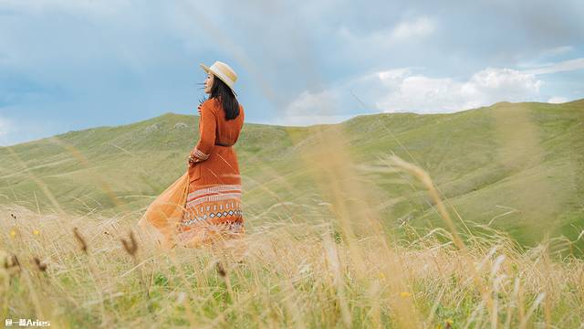 远处低矮的树木点缀在草原上,走进时,光影将人与自然完美融合。