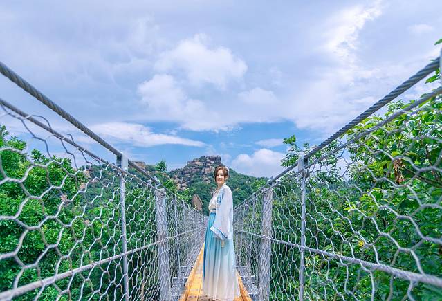 走上玻璃栈道,悬于高空、脚底临空,低头便是百米悬崖。凌空而立的惊险刺激、荡魂摄魄的溢彩河山。行走在云端之上,远观漫山,流香叠翠穿云雾;近赏峭壁,飞峭危崖雾抱松。