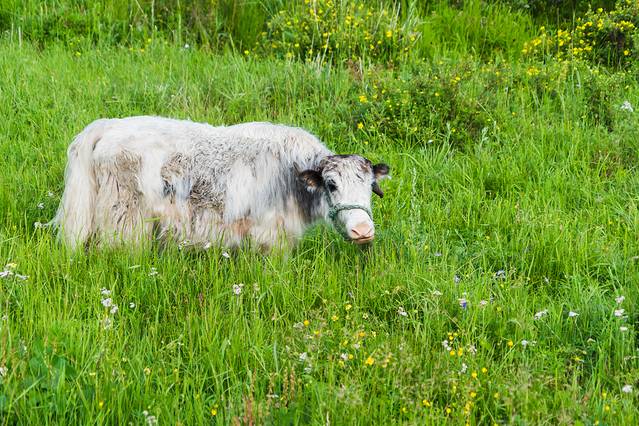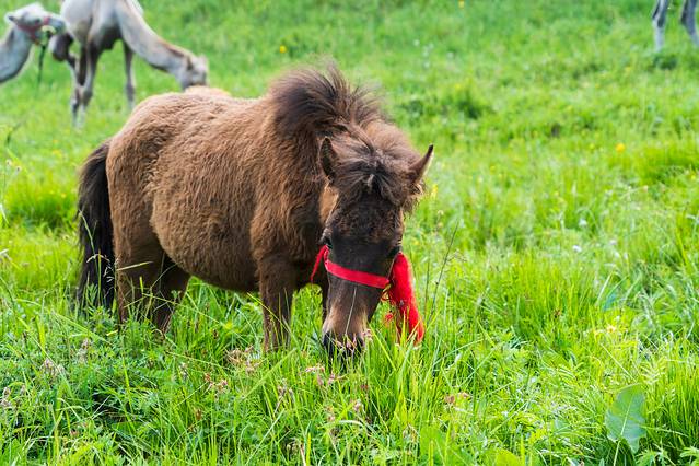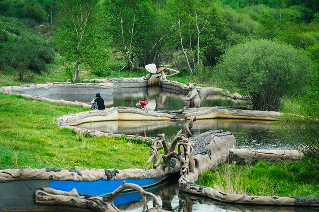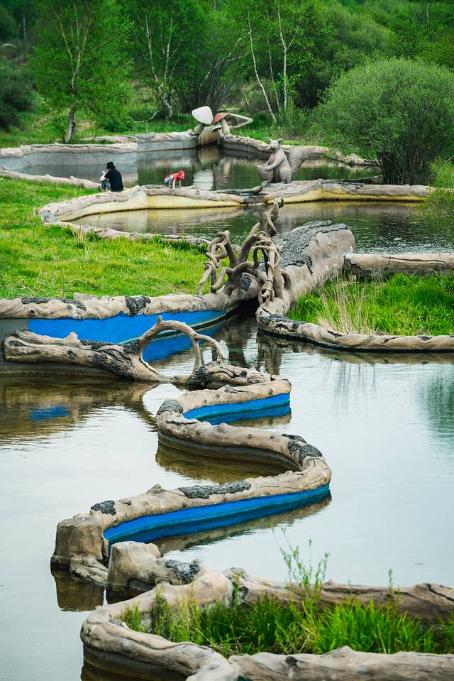 在七彩森林,不仅可以邂逅各种花草植物,还可以逛逛草原上的动物乐园。走进动物乐园的门口,随处有可能偶遇草原上的牛羊和马匹。它们兀自吃着青草,或散漫地行走自己的路,在这里,它们是世界的主人。圈养的羊驼和矮马供人们观赏,如果胆子够大,可以和它们来个亲密接触。