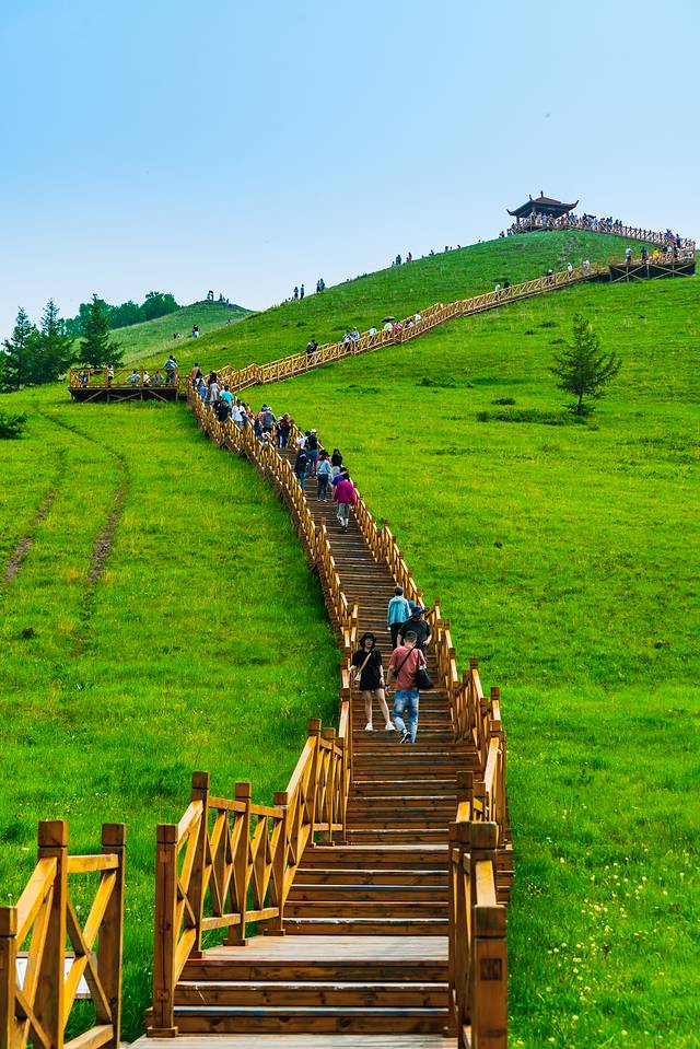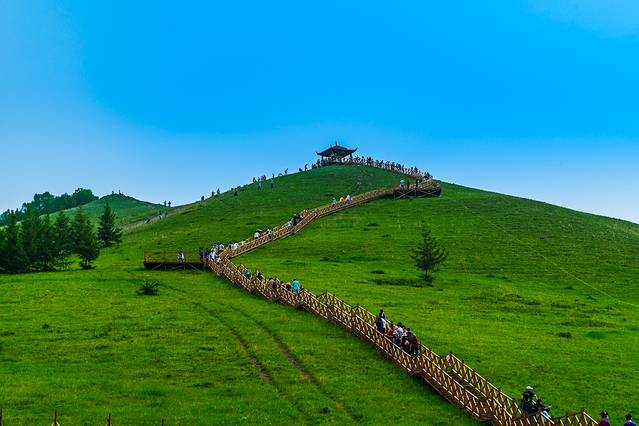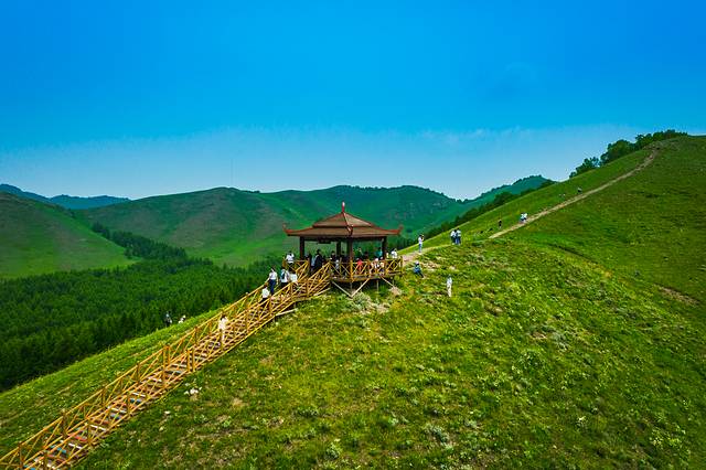 登上云亭,环顾四周,每一个方向都是风景。那草儿青青,草地上开着各色的花儿,红的、黄的、蓝的、紫的,金莲花、野芍药、野菊花开得恰到好处,野趣无限。每一步都是小惊喜,每一步都是小确幸,那小花开得不吵不闹,远离闹市、远离喧嚣,将这片森林装扮得如此美丽。