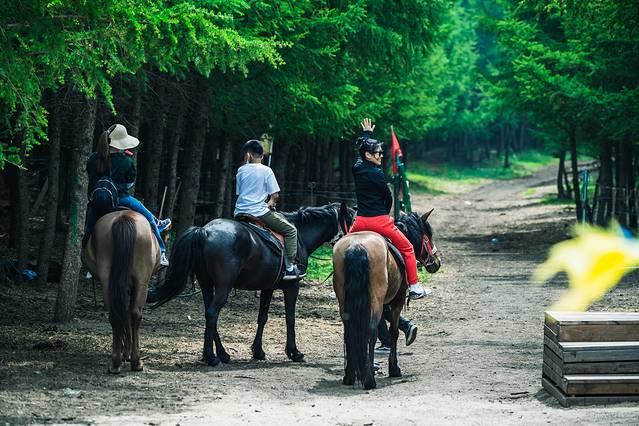 “让我们红尘作伴活得潇潇洒洒,策马奔腾共享人世繁华。”一直以来,在美丽的大草原上策马奔腾就成了我的的梦想之一。这次来到坝上草原七彩森林,又怎么能少得了骑马体验?由丛林部落选择一匹自己喜爱的马儿,穿越丛林,即便不能策马扬鞭,也能体验到一种特有的悠闲。