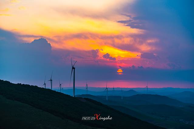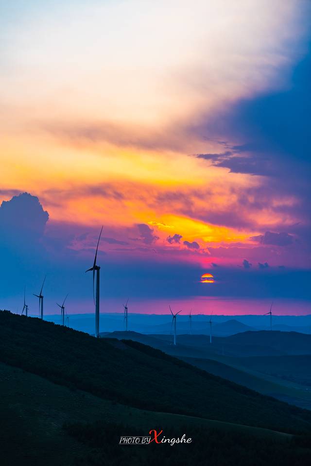连绵叠翠的远山,山顶矗立的风车,盛开着的随风摇曳的花,惬意吃草的牛羊,一跃而起散落满山笑容的稚童,这些画面逐帧定格,与落日余晖漫天云霞辉映,构成了和谐完美的山水画。