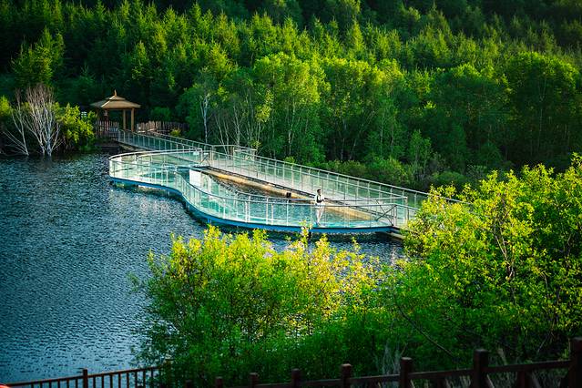 人类自古以来就有着化身飞鸟的梦想,想象着可以像鸟儿一样飞翔。踏上“树梢上的脚步”网红空中玻璃走廊,树梢就在身旁,透过树梢,两侧都是绝美的风景。清风徐来,脚下是透明的玻璃走廊,走廊不高,恐高的也不怕。