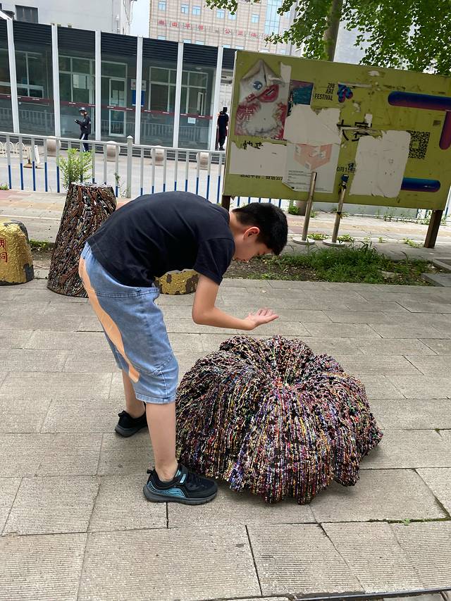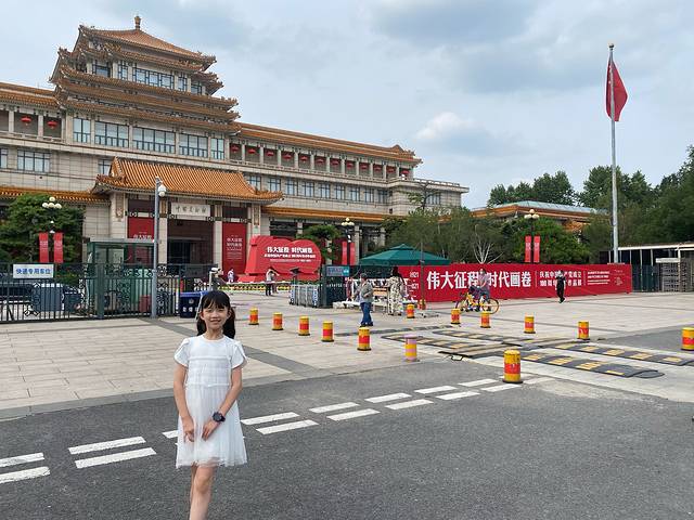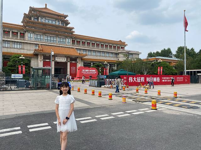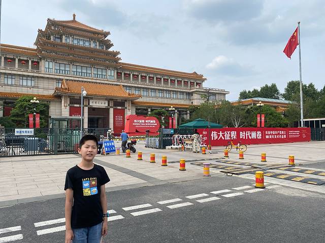 吃完烤鸭天色尚早,哈哈,实在不想那么早回酒店。于是在路过中国美术馆站的十字路口上,果断跳下出租车带着两娃去美术馆了