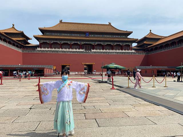 把婆婆送到国家博物馆(因为临时加入,故宫门票没订上,只好独自去国家博物馆打发时间了)大家一行腿着从故宫东门绕行到午门,因为党庆100周年,所有网购票都还要先到窗口预检北京健康宝然后再到午门口刷身份证过闸验票