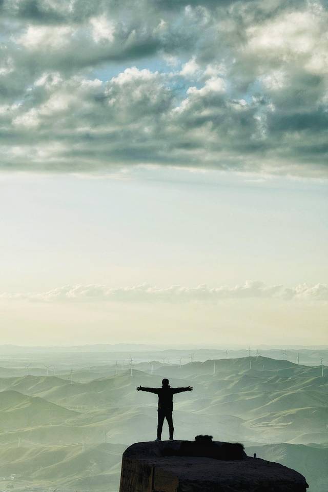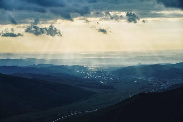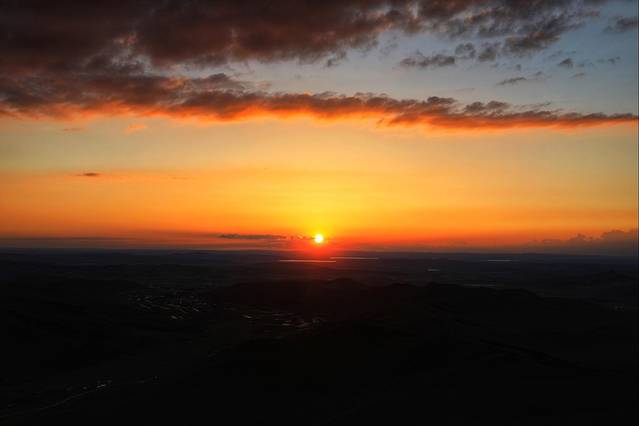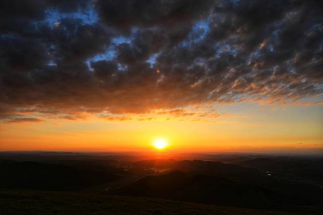 停好车,站在山之巅,苍茫天地间,俯瞰辽阔的草原山川,在云卷风动中等待一场日暮斜阳,流云浮动云层渐厚,原本以为可能要错过了,但是依旧坚持没有放弃,最终,所有的美好终将相遇,一轮红日越过云端,红色的光辉染红了天际,此时此刻,站在山之巅,心潮澎湃,这一刻的远离尘嚣,只想回归自然的宁静。随着时间的流逝,天空的颜色会根据太阳的角度,天气呈现出千变万化的色彩,不得不感叹,世间万物皆有其动人的地方