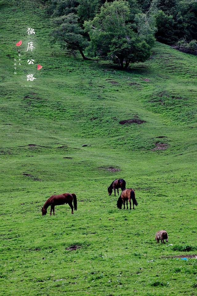 20日一早,又开始淅淅沥沥下个不停,本来打算上午8点再进景区游河谷草原,只能作罢,到10点准备离开那拉提,走独库公路到巴音布鲁克,驾车到那拉提景区门口,雨又停了,立马拐进景区,游玩了河谷草原。