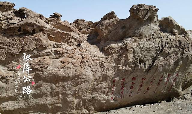 出盐水沟道口5公里左右有个停车点,千万不能错过,这里有“独库公路终点”的界碑,也可以导航“盐水沟金字塔”景区,就在附近了。