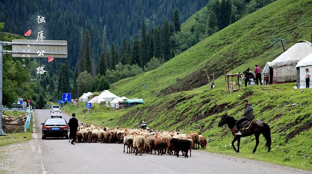 这里水草丰沛,羊肉肥美鲜嫩,建议大家去尝试,于是按照我们的行程,出景区到那拉提安顿好后直奔有手抓羊肉的饭店,大大满足了一下食欲。