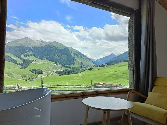 旺季,价格实惠,窗口看得见那拉提风景,很养眼。走到主入口也就一公里,在镇上,周边都是商场饭店,很方便。干净整洁,卫生间设施更新一下就更好了。