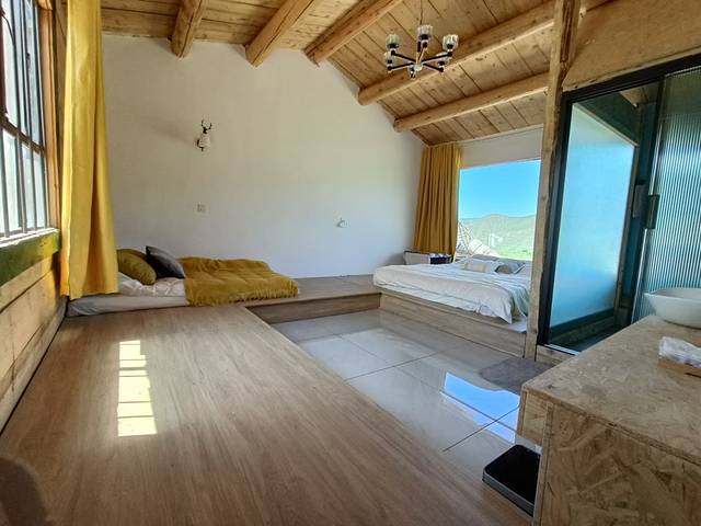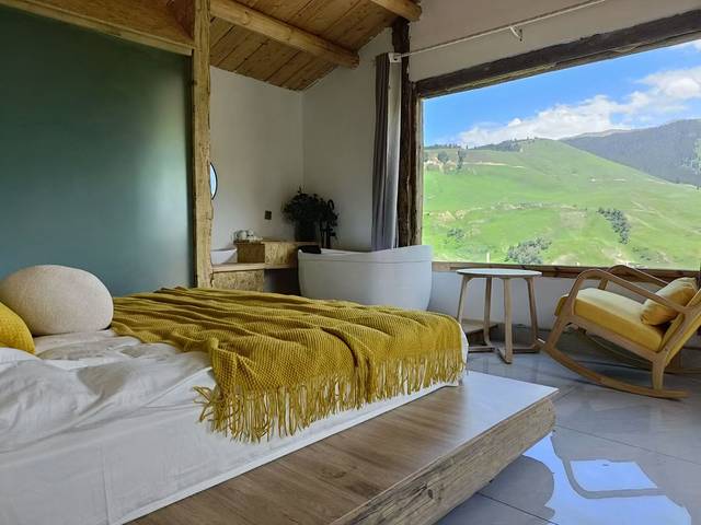 偶然看到民宿老板自己写的游记,提前二个月联系他订了房间,580元一间。我去的时候是旺季,老板说给我住的这间当天要1000多呢。民宿外表比较朴素,小木屋风格。内部装修蛮现代化的,智能卫浴,躺在床上能看风景,个别房间还开了天窗,晚上能看星星。床品也舒服。有简单的早餐粥、鸡蛋、馒头。没有饮用水。草原早晚天气温差很大,洗澡的话不能太晚,否则很冷。可以在他家吃饭,菜还不错,价格也实惠,人均50左右,晚上还有羊肉串,每串10元。我当时选择时的首要条件是有独立卫浴,看他家条件算比较好的。推荐!