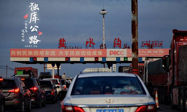 用了大半天时间,从库车去克孜尔千佛洞,从库车天缘国际酒店过去,单程1.5小时,重返独库公路,重新进出盐水沟收费口(进出收费均为20元)。