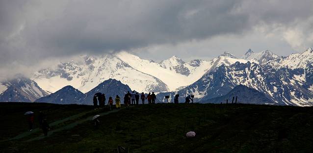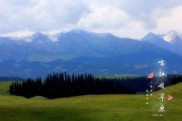 鲜花台果然名副其实,草地上各种小花密密匝匝地相互簇拥着竞相开放,来到主观景台,更是赞叹天工织就,无与伦比。青翠的夏季牧场花儿朵朵、镶嵌在牧场的云杉林如墨玉般湿润、天山主峰博格达峰近在咫尺。此时,什么都不要,只需静静地坐着,感受大自然的馈赠。