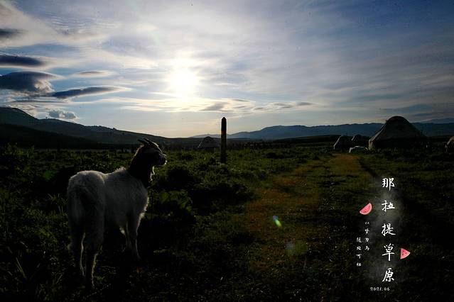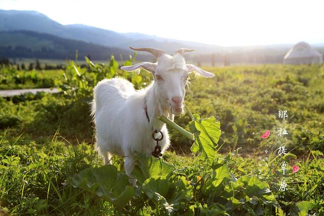在伊犁最美的夏季牧场遇见一只安闲自得吃货羊🐏 和一只向往诗和远方羊🐏 。