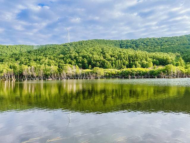 听名字就感受到的纯净,就像是映照着天空的镜子一样,是山脚下一片静静的湖,没有风时湖面倒映出山上的风车。绝美的拍照打卡地。