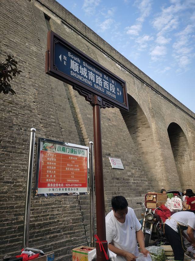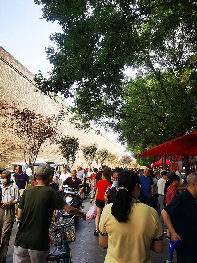 城墙下来沿着南大街往北走,导游说,到了粉巷左转,到了竹笆市右转,直走到鼓楼,就是回民街了。过了西木头市,不经意正好走到朋友推荐一定要打卡的钟楼小区美食街。