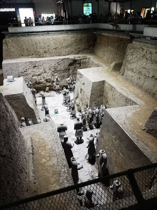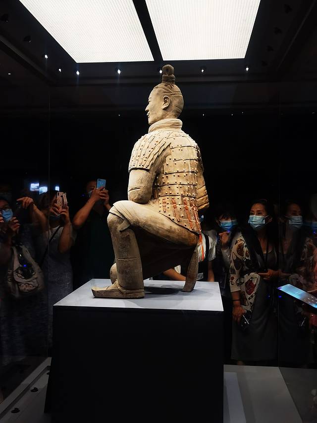 这个跪姿兵马俑,是保存最完好的一个,清晰可见当时工匠的水平。据说这个角度,看上去就是陕西的轮廓。真巧合。