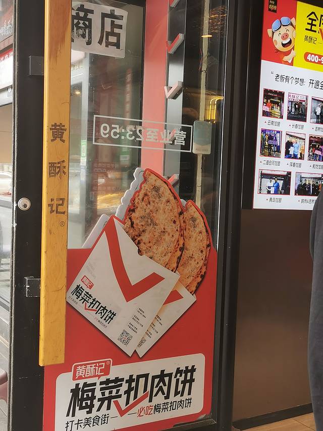 小店不大,门口排队,点餐一侧,取梅菜饼一侧,还有和饮料一起的套餐,我们排了大约20分钟,终于可以吃到啦,火候有些偏大,吃起来脆脆甜甜的,和在家里的味道一样,没有特别。