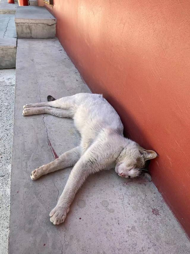 娘娘庙旧址还在,在面对金鼎大佛的右侧。娘娘庙里面不大,有五座殿堂可以祭拜,门口台阶上有一只小猫在睡觉,一副悠然的样子。