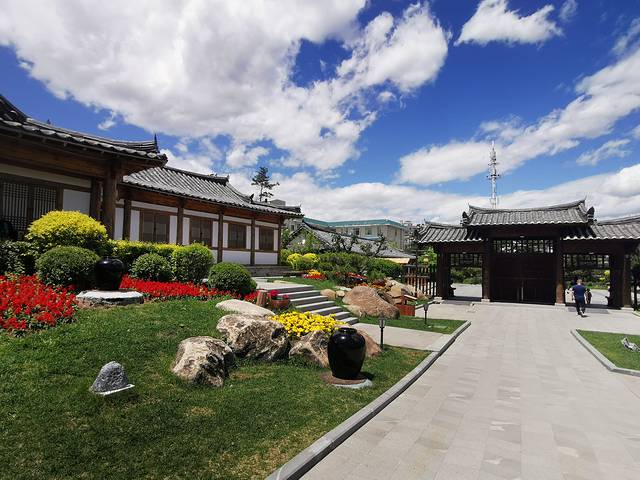 酒店早餐,收拾东西、退房,大约9:30分出发去朝鲜族民俗村,开车大约10分钟到达民俗村。免门票,游客也不多,难得好天气,照片也漂亮一些,还可以租民族服饰拍照,有几间百年老屋,建筑很有特色,进院子拍照都是可以的,室内游客止步。村子里还有一些民族特色的游戏和体育项目,也有手工艺品出售。