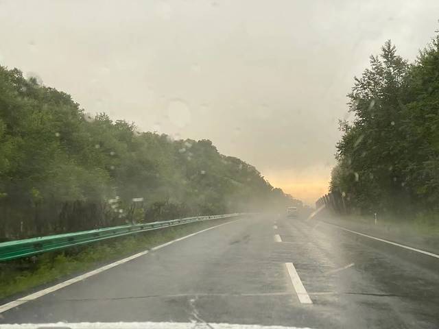 高速路上大雨倾盆,幸亏车辆不多,同向和对向的车辆都打起双闪灯,大约30分钟雨越下越小了,雨停后高速路上出险悬浮在路面大约3-4米高的雨雾,我还是第一次见到这样的路况😳🤔