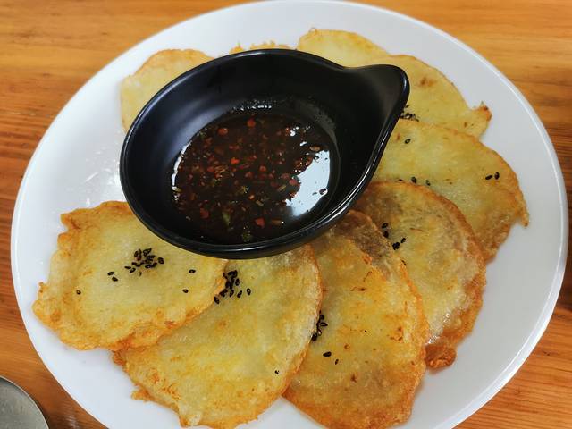 土豆饼粘粘的,好像糯米粉放多的感觉,还很油。
