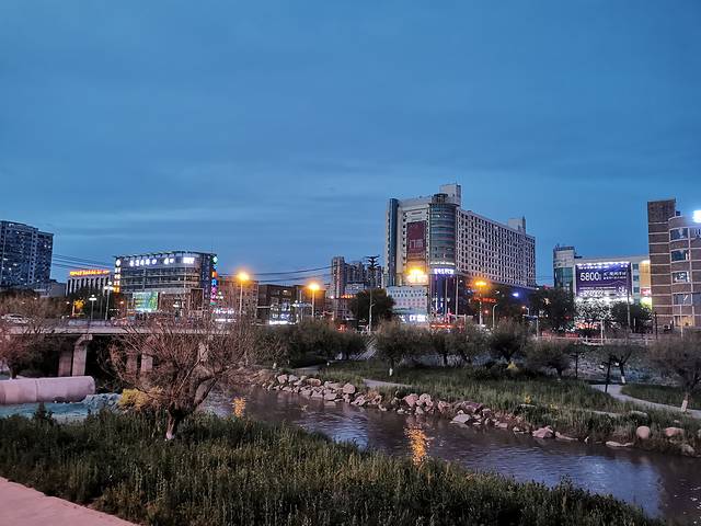 酒店正门前面有一条小河,河对面就是西市场和时代广场。