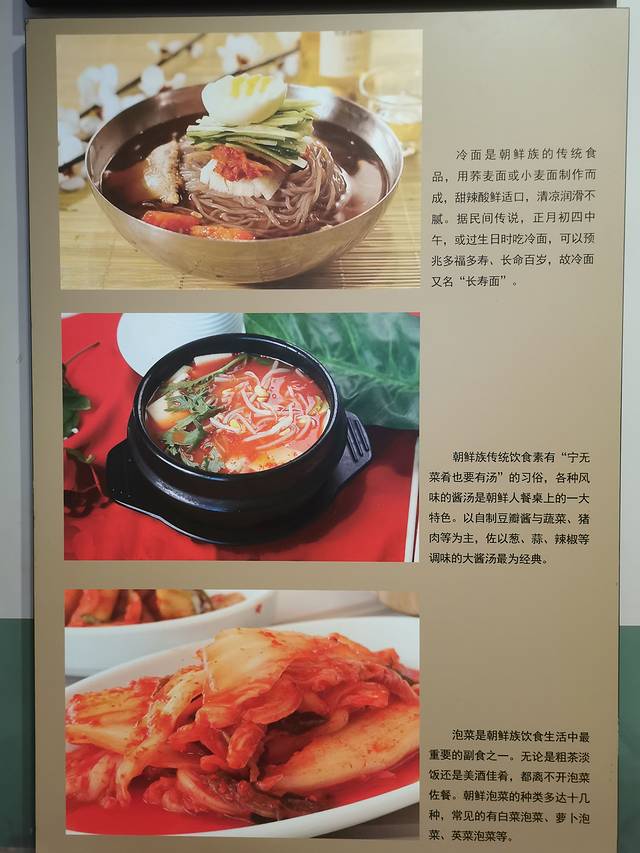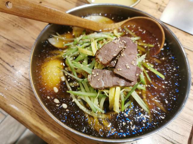 先说冷面配锅包肉,还真是第一次这样搭配吃,味道很意外,口腔里冰冰凉凉的冷面遇见酸甜可口酥酥嫩嫩的锅包肉,咀嚼后那种缠绕的味道,说不清又很难忘怀,没吃过的朋友值得尝一下。酱汤味道浓厚,明太鱼有点腥味,可能本身明太鱼就是这个味道吧。