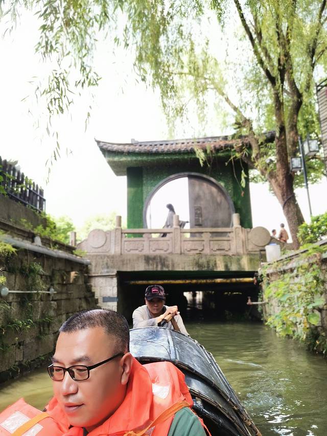 吃过午饭骄阳似火有些怯意继续行走。在路边的神牛车老板主动邀请我们坐车游讲价100元带我们游览蔡元培故居,王羲之故居,古街中的義之题扇桥,黄酒馆,题字馆…省了些力气逛着也不那么热了。结束之后开始下起大雨了(这个季节雨说来就来一定要带伞),我们没带伞进星巴克喝咖啡等雨停,雨停后步行去周恩来故居己经16点后了,不让进了16:30闭馆,16点后就不能进了。外面看看去八字桥,八字桥历史悠久,桥上观景,充分体会江南水乡的美。