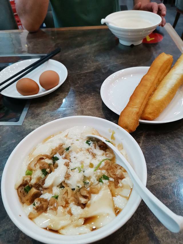 在取票点边看到咬不得生煎尝尝,原来是生煎多汁一咬汁水喷溅因而咬不得。生煎配红豆沙、皮蛋瘦肉粥吃得美美的!