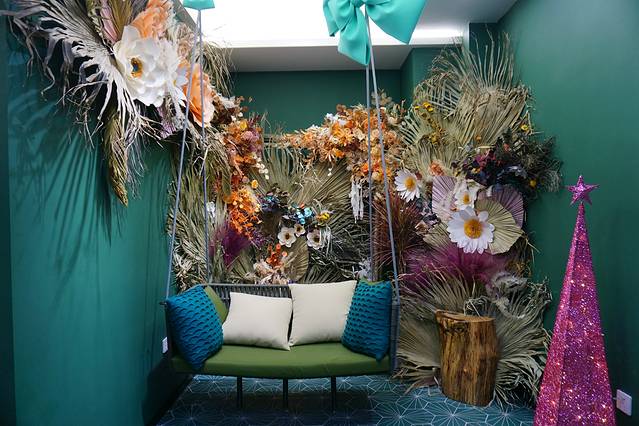 咖啡屋的装饰很可爱,绿墙角落摆放了很多干花干草,还有一架绑着蝴蝶结的秋千,在这凹造型打卡,ins风也满满。