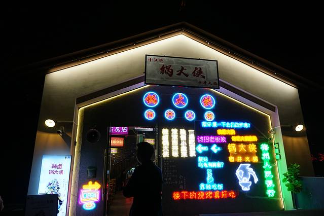 还有一个锅大侠,这家店的装饰走的是90年代风,霓虹灯是搞怪有趣的语句,内饰还有各种装饰灯箱,虽然是室内,但总有一种在90年代的市井街头吃夜宵的感觉,氛围感up up up。