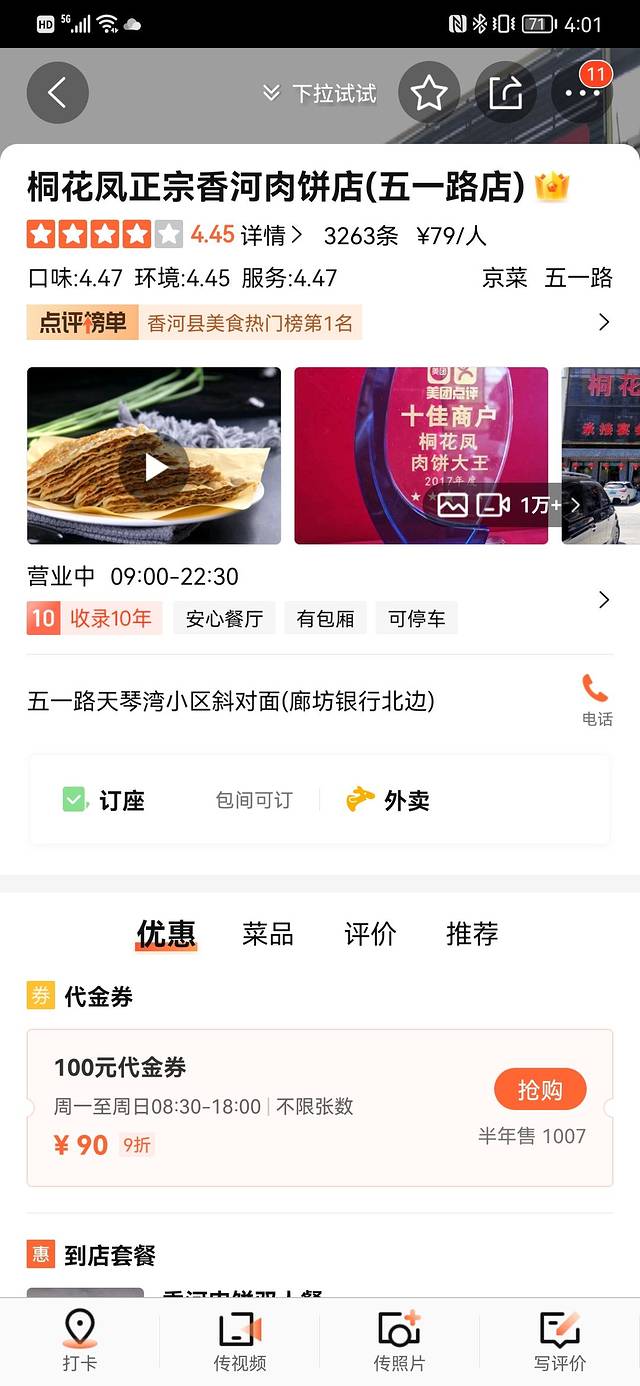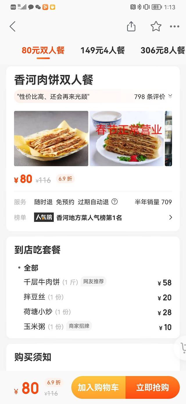桐花凤正宗香河肉饼店,坐下来看了一下菜单,菜品太丰富了,可惜两个人不好点菜,为了省事儿就在某团上团了个双人套餐。