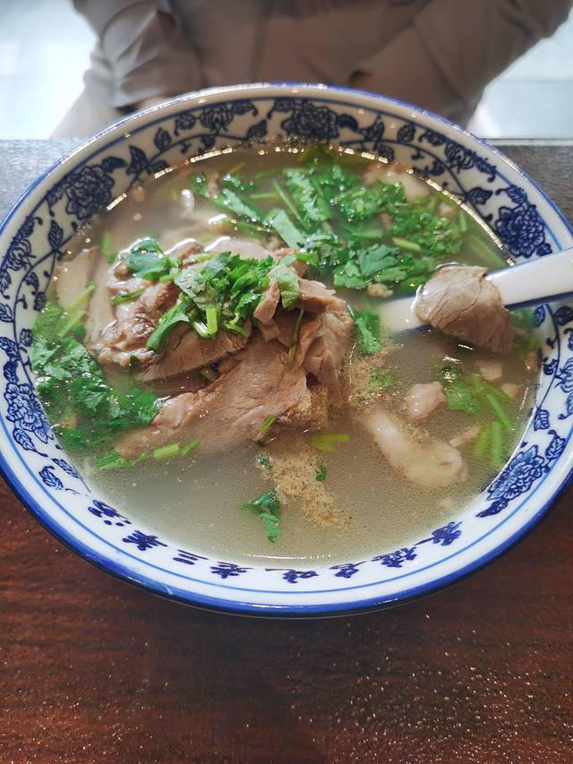 羊肉汤,肉软汤鲜,没有一点膻气味。