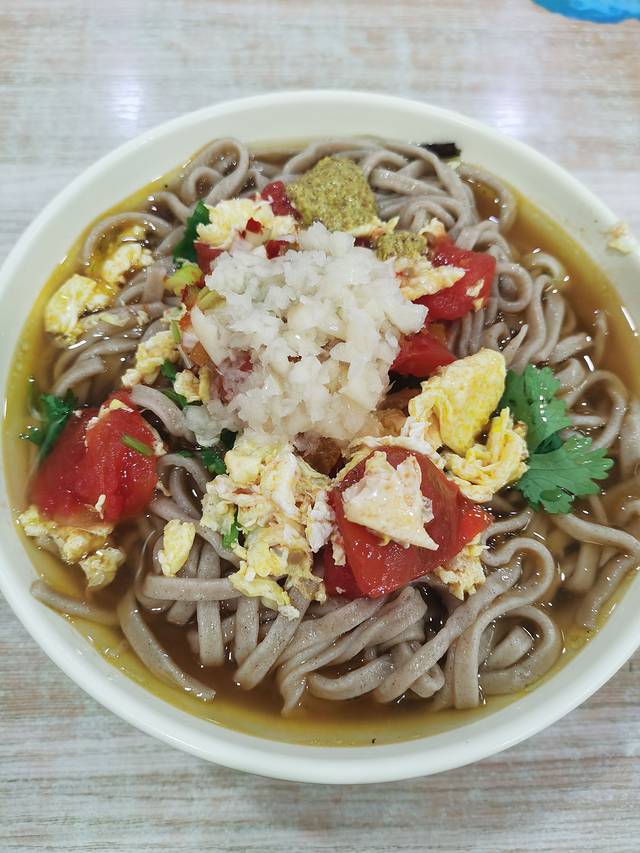承德的特色早餐,手工荞面条,好几种卤。小份九元。